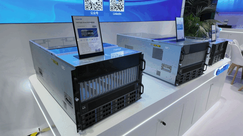 全球最高算力密度旗舰:首发亮相的Intel Eagle Stream平台8U16卡AI服务器(SY8116G-D12R-G4),以单机容纳最高20张GPU的极限设计刷新行业纪录。其配备32条DDR5内存插槽与26个PCIe扩展槽,支持12盘位热插拔存储,为千亿参数大模型构建“城市级智能中枢”给予核心承载,适用于人工智能、智慧城市、医疗健康及虚拟现实等领域。据悉,这款产品将在今年年底正式上市。